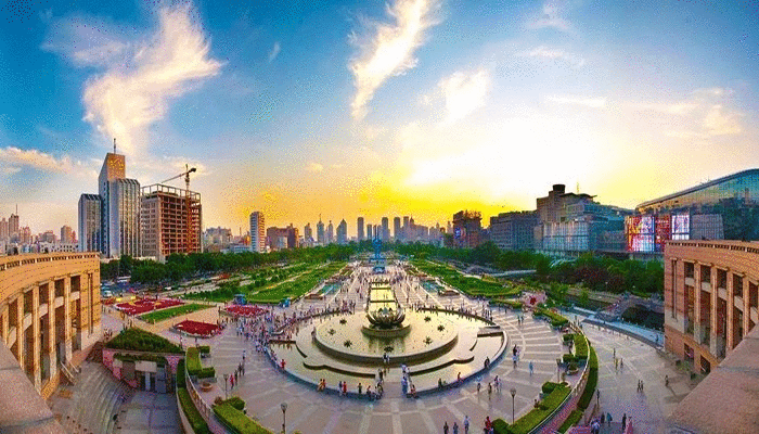 泉城廣場坐落于濟(jì)南市中心的繁華地帶,自西向東依次包括: 趵突泉廣場、濟(jì)南名士林、泉標(biāo)廣場、下沉廣場、頤天園及童樂園、濱河廣場、銀座購物廣場、荷花音樂噴泉、四季花園、文化長廊、科技館等十余部分。